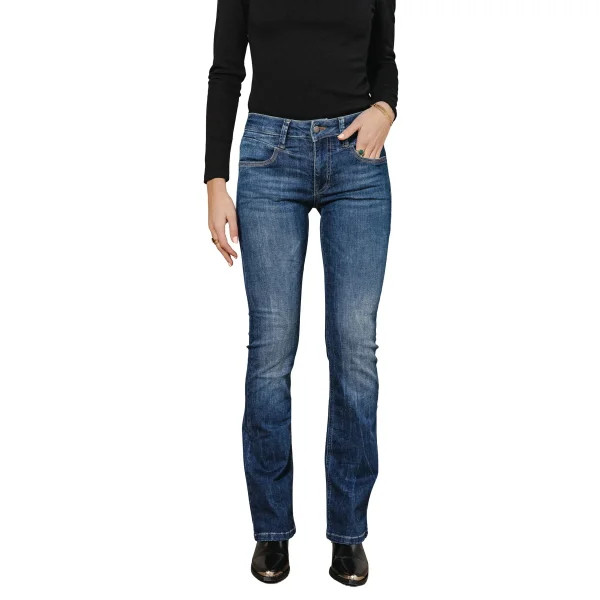 Bootcut pasvorm (licht uitlopende)Normale taillehoogteSuper stretch materiaal, vormgevend, ultra comfortabelIntense donkerblauwe wassing, versletenOm ervoor te zorgen dat dit kledingstuk lang meegaat, volg je deze regels:Was het binnenstebuiten in de machine op 30° en met soortgelijke kleurenLaat het aan de lucht drogen, niet in de drogerStrijk het op maximaal 150°