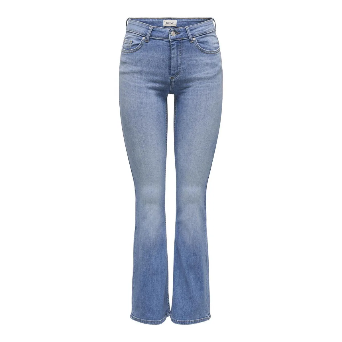 Bootcut jeans van ONLY voor dames;Model 'Blush';Look: Denim;Pasvorm: Flared boot cut;Bandhoogte: Mid waist;Applicatie: Logopatch;Details: Riemlussen;Sluiting: Knoop en blinde ritssluiting;Zakken: 5-pocketdesign;Materiaal: Katoenmix