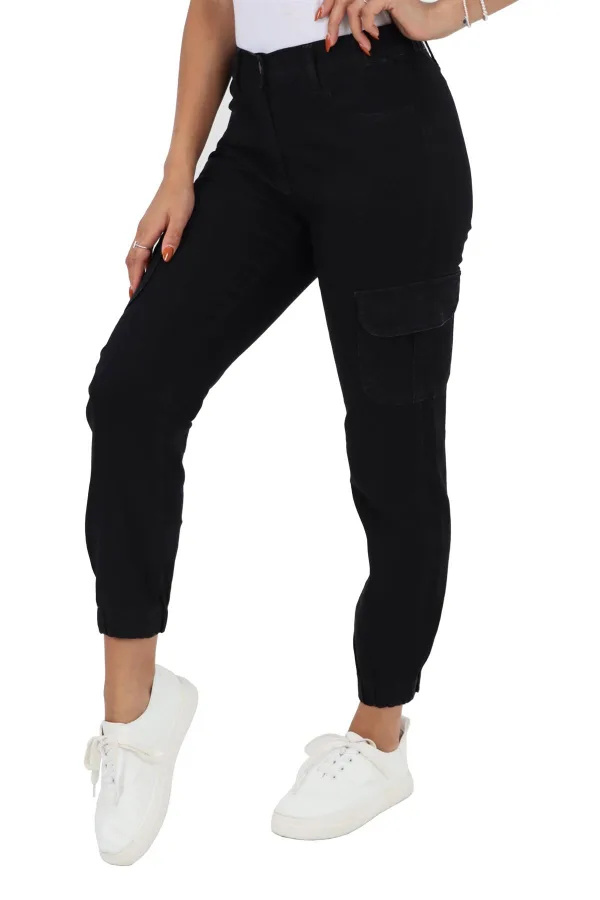 Damesjeans met elastische taille en zelfboeien in zwart