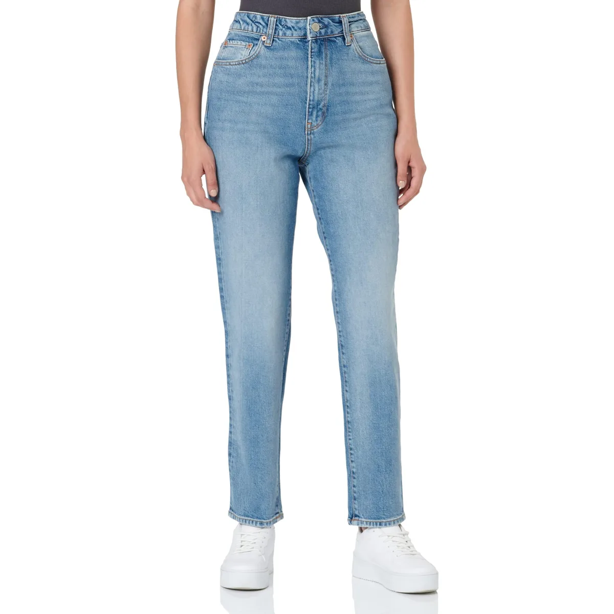 - Type detail : Slim fit jeans- Sluiting: Rits- Lengte/Maat: Enkellengte- Taille/Hoogte: Hoge taille- Stof: Denim met wat stretch toegevoegd voor extra comfort.- Was Afwerking: Stonewashed voor authenticiteit.- Andere zakken: Klassieke vijf zak stijl- Pasvorm: Slank Pasvorm