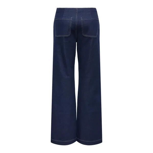 Design: Gevoerde zoom/rand, Knop placket; Type sluiting: Knoopsluiting; Materiaal: Denim; Motief: Effen; Extra's: Contrasterende naden, Vaste grip; Wassing: Rinsed/dark washed; Lengte: Lang/maxi; Pasvorm: Wide leg; Taillehoogte: High waist