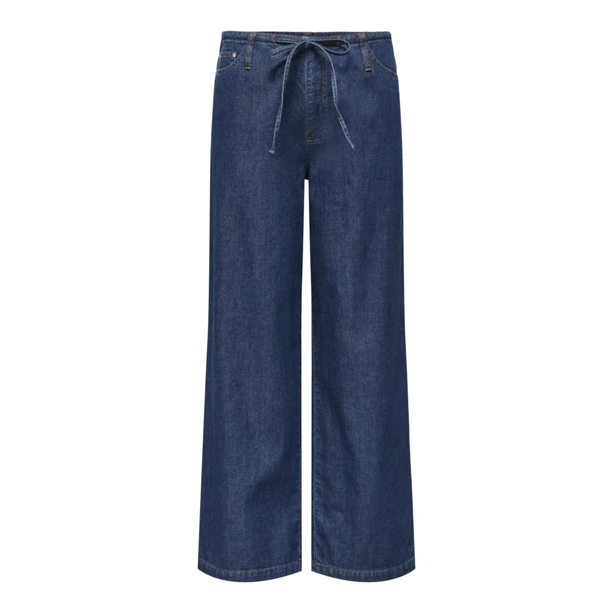 Design: Met band/snoer, 5-pocket-style; Materiaal: Denim; Motief: Effen; Extra's: Contrasterende naden, Vaste grip; Wassing: Blauw denim; Lengte: Lang/maxi; Pasvorm: Wide leg; Taillehoogte: Mid waist