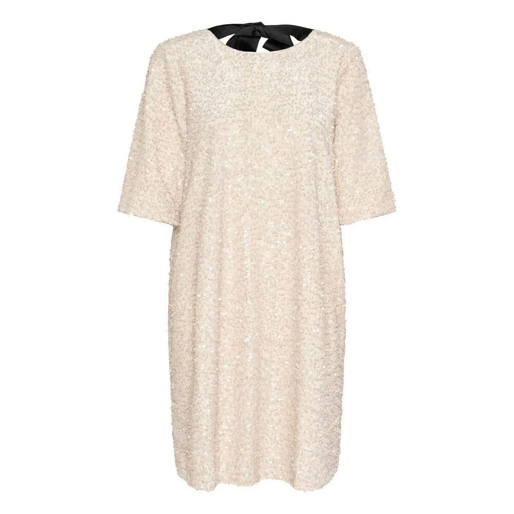 De pailletten jurk vangt het licht met zijn rechte silhouet, zijn lengte boven de knie, zijn ronde halslijn en zijn mouwen tot aan de elleboog. Afgewerkt met een contrasterend touwdetail aan de achterkant van de hals voor een opvallende touch.SnitSnit: A-lijnLengte: Boven de knieMouwen: Boven de elleboogStofsamenstelling94% Polyester, 6% ElastaanVoering: 93% Polyester, 7% Elastaan