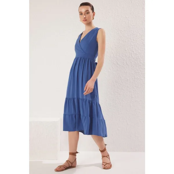 - Bij vd.nl kun je Damesjurk: effen blauwe midi-jurk zonder mouwen, casual model kopen voor slechts €68,24