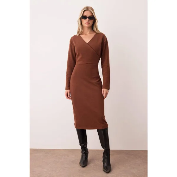 Damesjurk in bruin, plat model, midi-lengte, casual/bodycon model