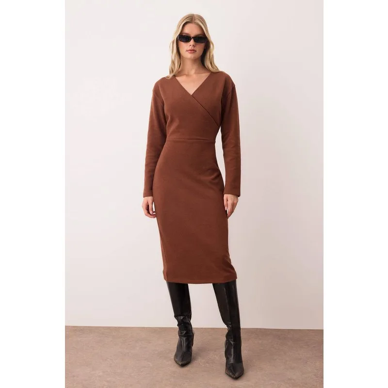 Damesjurk in bruin plat model midilengte casualbodycon model