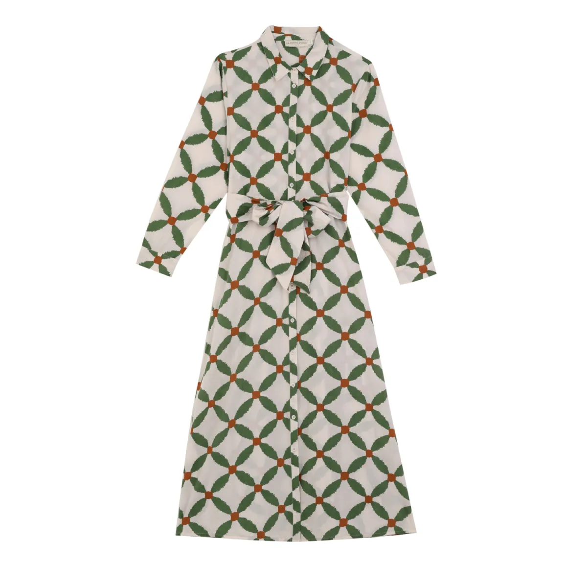 Wees chique en trendy door het dragen van deze jurk ANADELINE. Met lange mouwen en een ceintuur in de taille belooft het echt comfort bij het dragen.Eigenschappen:Materiaal: katoen Maxi-jurk in overhemdstijlAangesnoerd in de tailleLange mouwenV-halsKnoopsluiting aan de onderkant.