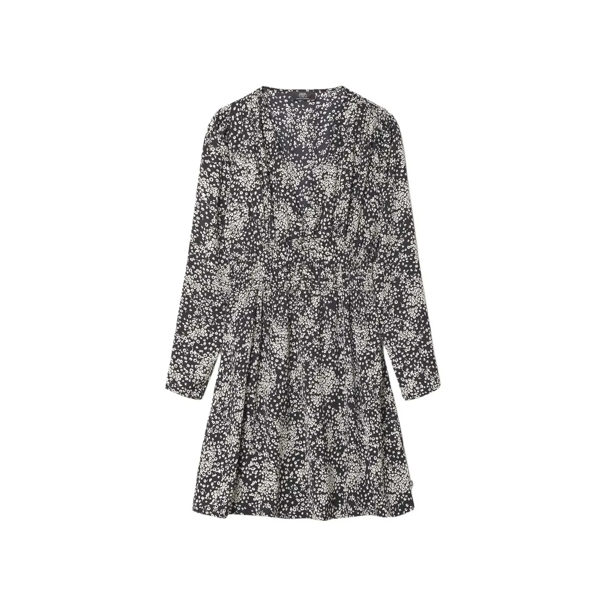 Korte damesjurk met bloemenprint van Le Temps des Cerises. V-hals Lange mouwen Elastische taille Bloemenprint Knoopsluiting Uitlopend model