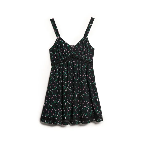 Ons hemdje met V-hals en kanten randje is perfect om een vleugje zon aan je outfits toe te voegen. De kanten inzetstukken en knoopsluiting voegen een delicate touch toe die je authentieke stijl aanvult. Of je nu gaat picknicken of een avondje uit gaat, de vloeiende rok en bloemmotieven zullen een hit zijn als je de verleidelijke, vrouwelijke kaart speelt.Casual fit - de klassieke snit van Superdry. Niet te strak, niet te los. Precies goed. Kies je gebruikelijke maat. Brede bandjes. V-hals. Knoopsluiting. Kanten inzet aan de zoom en rond de taille. Volledige voering Voering: 100% viscose Body: 100% viscose