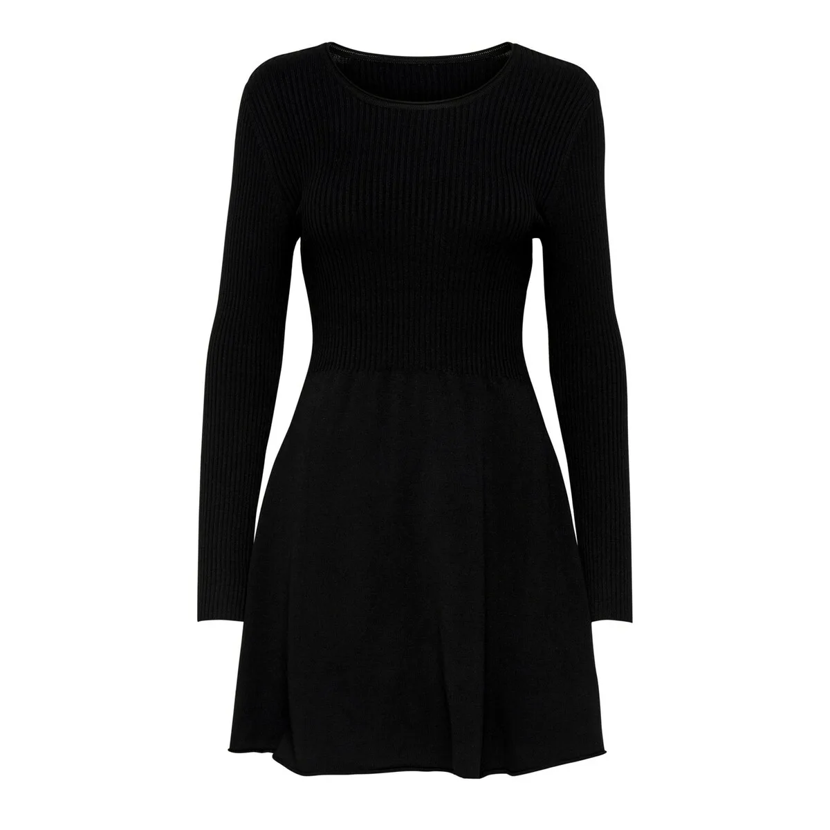 Gebreide jurk van Only;Model ‘Alma’;Look: effen;Pasvorm: licht uitlopend;Lengte: Mini ;Hals: Ronde hals, gerold;Mouwvorm: lange mouwen;Zoom: gerold;Materiaalverwerking: Fijnrib, geribd;Materiaal: Viscosemix;Totale lengte bij maat S: 83 cm;Borstomvang bij maat S: 38 cm;Schouderbreedte bij maat S: 31 cm;Mouwlengte bij maat S: 61 cm