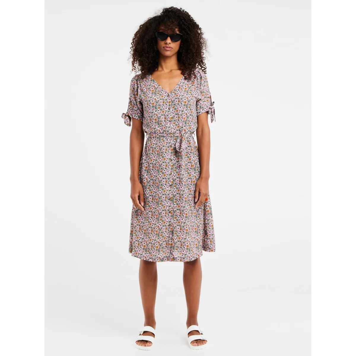 Omarm de bloementrend dit seizoen met PRTBANDA van Protest. Deze prachtige midi-jurk heeft korte mouwen en komt tot boven de knie. Hij heeft een normale pasvorm. Hij is gemaakt van een mooie, licht stretchende stof en heeft een heerlijk draagcomfort. De stoffen ceintuur rond de taille, de bandjes bij de mouwen en de knopen aan de voorkant geven het geheel de perfecte finishing touch.