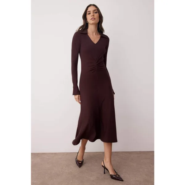 Modelinformatie: Modelafmetingen: Lengte: 176 cm (5'10'') Borst: 84 cm (33 inch) Taille: 60 cm (23 inch) Heup: 89 cm (35 inch); Het product op het model is maat S/36/8.; Materiaal: 74% polyester, 22% viscose, 4% elastaan; Stofsoort: gebreid; Lengte voorkant model: 120,0 cm; Volg de onderstaande wasinstructies voor een langere levensduur en een goede verzorging van uw product.; Het is een stijlvolle en vrouwelijke snit die het bovenlichaam accentueert en een uitlopende rok heeft.; Het product is ongevoerd.; Kleuren kunnen afwijken door verschillen in belichting bij studiofoto's.