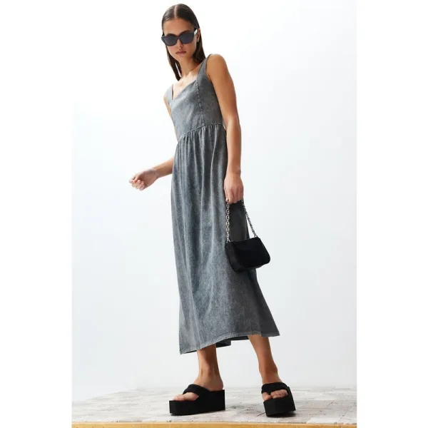 Damesjurken Grau Unifarben Lange Mouwloze Casual Relaxte Jurken Prijzen