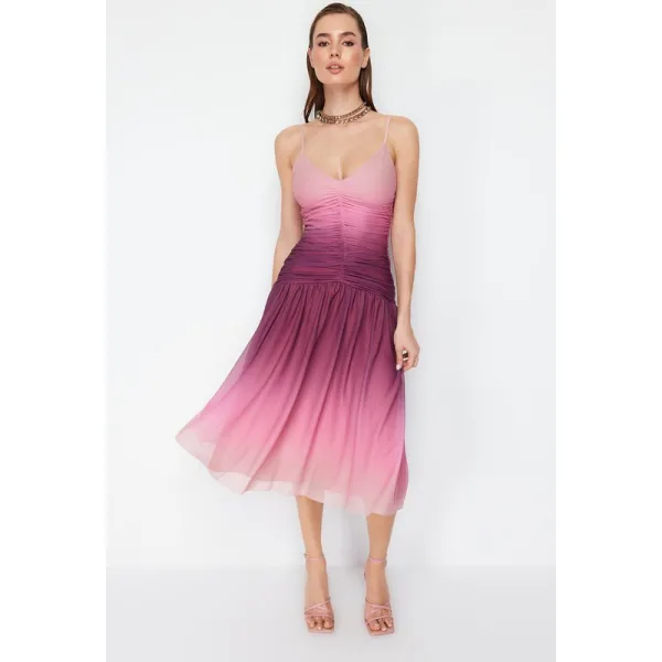 Specificaties: Damesjurken in midi-lengte met spaghettibandjes en aansluitende pasvorm