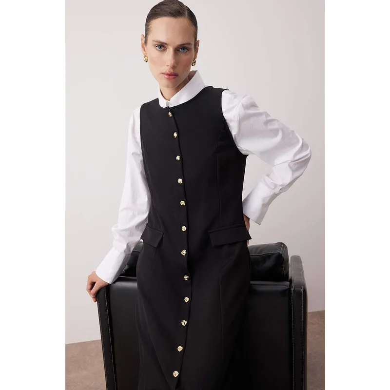 Modelinformatie: Modelafmetingen: Lengte: 172 cm (5'8'') Borst: 80 cm (31 inch) Taille: 60 cm (23 inch) Heup: 89 cm (35 inch); Het product op het model is maat S/36/8.; Materiaal: 87% polyester, 13% elastaan; Stofsoort: geweven; Lengte voorkant model: 135,0 cm; Volg de onderstaande wasinstructies voor een langere levensduur en een goede verzorging van uw product.; Niet gevoerd, het wordt aanbevolen om het met een voering te dragen.; Kleuren kunnen afwijken door lichtverschillen bij studio-opnamen.