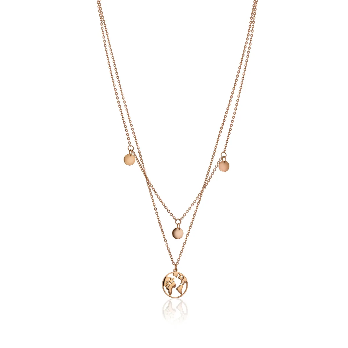 Stijlnaam: Wanderlust gouden collier rose Naam collectie: Wanderlust Materiaal: Roestvrij staalPlating: IP platingKleur: Goud rose Lengte: 42-46 cmBreedte: 1-2 mmBedelgrootte: 15 mm
