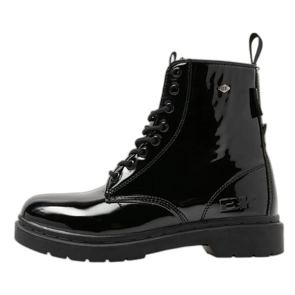 Design: Vetering met 8 gaten, Hielband; Type sluiting: Snoersluiting; Type hak: Blokhak; Materiaal: Imitatieleder; Motief: Effen; Plateau: Met plateau; Materiaal: Imitatieleer; Schoenneus: Ronde neus; Extra's: Glanzend, Anti-slip zool; Hakhoogte: Platte hak (0-3 cm)
