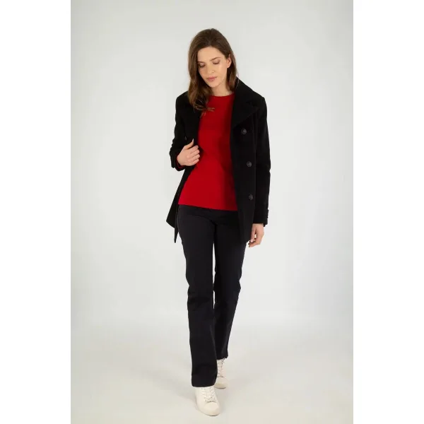 LET OP : Dit artikel valt klein. Bij twijfel tussen 2 maten, kies de grotere maat.De caban, tijdloos trendy, een betrouwbare keuze 100% wol voor perfecte bescherming. Caban voor vrouwen Wolvelours Sluiting met dubbele knopen Gegraveerde knopen Effen voering in dezelfde kleur Contrasterende biezen binnenin in ecru Bevestigingen aan de onderkant van de mouwen Lengte voor maat 38: 73,5 cmMateriaal: 100% Wol Satin voering 100% polyester