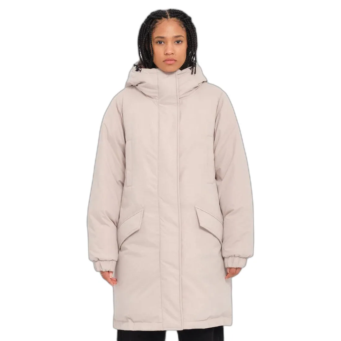 Kenmerken:Lange en dikke parka voor damesLoose fitGemiddelde lengteHoge kraagVerstelbare capuchonOnzichtbare ritssluiting en drukknoopsluitingElastische manchettenZijzakken op de borstOnderste zak met klepBinnenzak voor een muts in de jasBorduursel Volcom op de klep van de linkerzakBorduursel Volcom Stone op de rechtermouwWaterbestendigheid: 600 mmDWR-finish Teflon EcoElite™ zonder PFCVoering 100% polyesterLengte voor maat S (van schouder tot zoom): 37" (94 cm)Vulling van 100% gerecycled polyester Repreve™