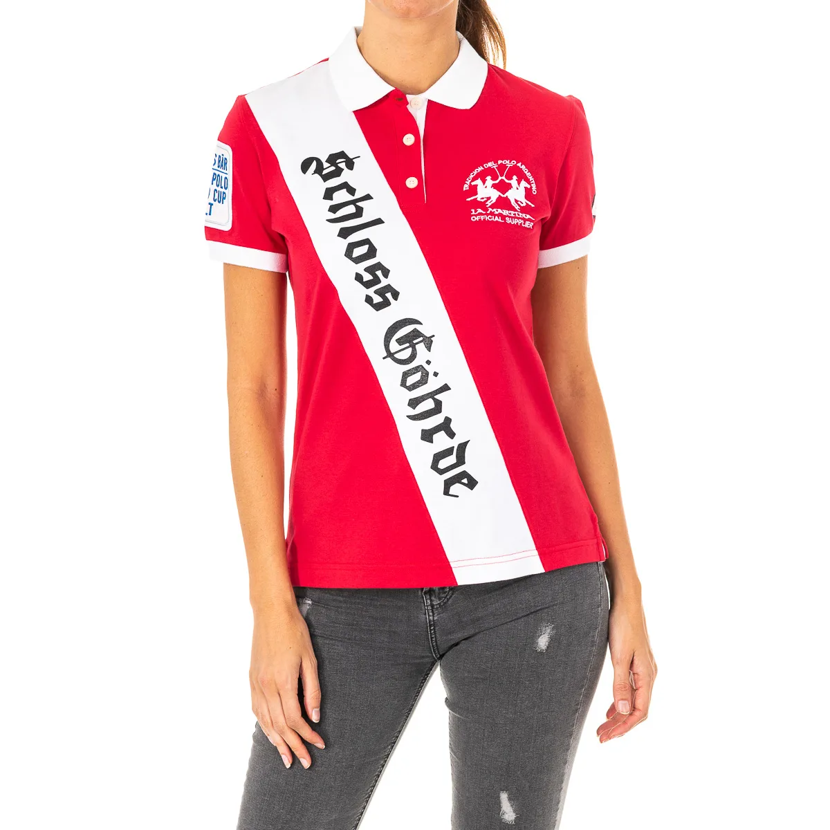 Polo korte mouw, met origineel ontwerp. Kleur rood-wit Kapelhals, in contrast. Middelgrote knoopsluiting. Borduursel van het merklogo op de bovenkant. Geborduurd ontwerp op de rug, voorkant en mouw. Naden in toon zichtbaar. Samenstelling: 95% Katoen - 5% Elastaan Wasvoorschriften: - Maximaal wassen op 40ºC. - Strijken op gemiddelde temperatuur, max. 130ºC. - Droger mag gebruikt worden. - Geen bleekmiddel gebruiken. Maat Europees ontwerp 1 XS 2 S 3 M 4 L 5 XL 6 XXL - Kan niet chemisch gereinigd worden. Samenstelling: 95% Katoen, 5% Elastaan Onderhoud: - Maximaal wassen op 40ºC. - Strijken op gemiddelde temperatuur, max. 130ºC. - Kan in de droger. - Geen bleekmiddel gebruiken. - Kan niet chemisch gereinigd worden.