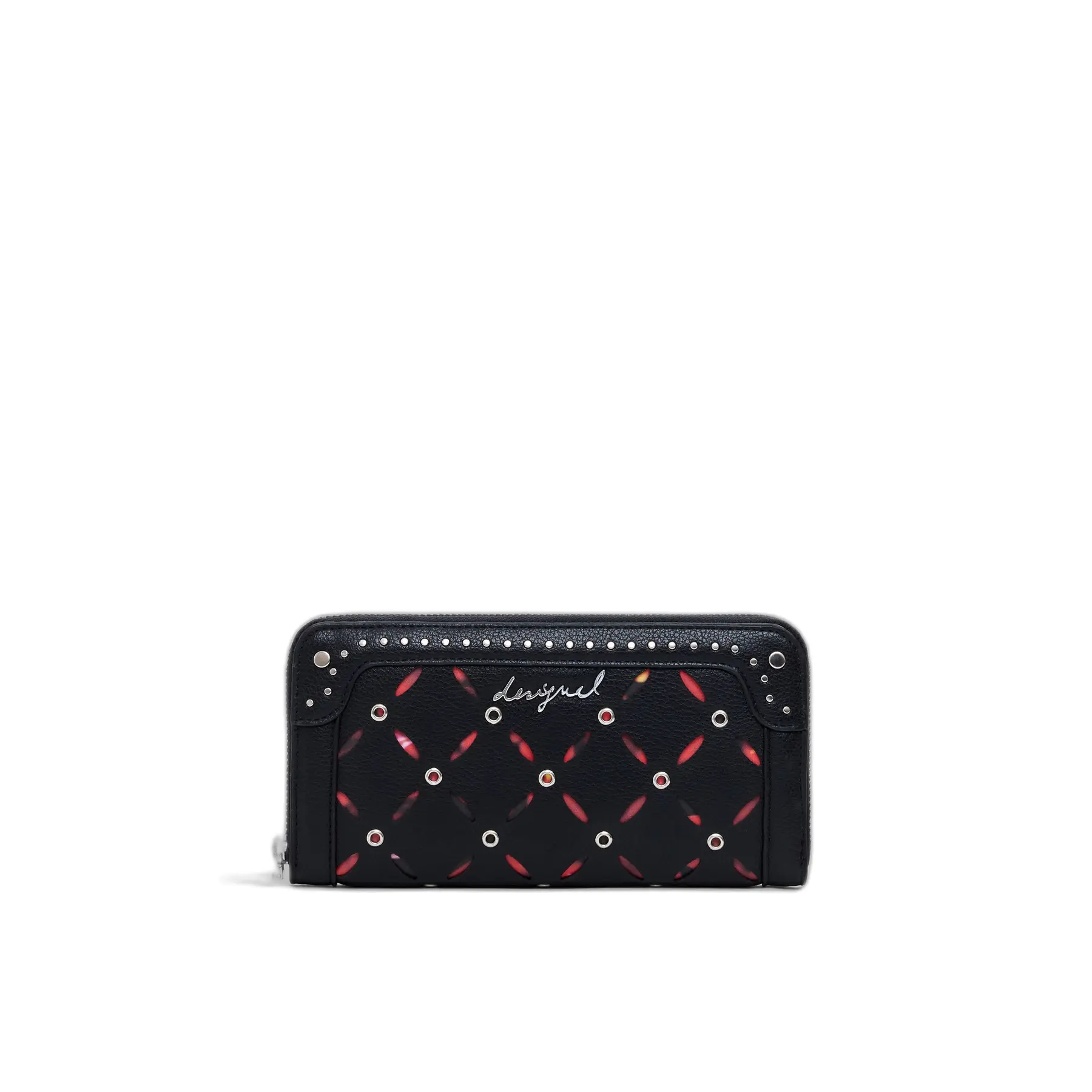 Design: Kaartvakjes, Meerdere vakken, Ritssluiting; Type sluiting: Ritssluiting; Extra's: Studs, All-over patroon, Label preegdruk, Metalen oogjes