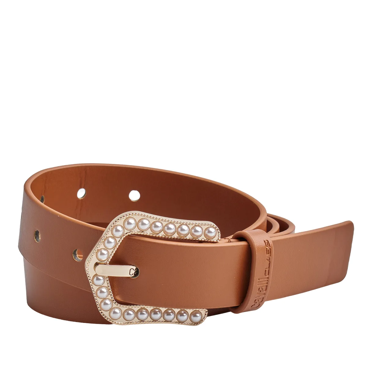 De Cavalli Class damesriem is meer dan alleen een accessoire: het is een statementstuk. Het combineert hedendaagse stijl en Italiaanse elegantie in een onmisbaar item. Gemaakt van hoogwaardig synthetisch leder, maakt deze riem indruk met zijn verfijnde design en stijlvol gouden metalen gesp, versierd met parels en het Cavalli Class-logo. Hij heeft zeven gaatjes in de riem voor een verstelbare pasvorm. Perfect voor wie op zoek is naar een veelzijdig en modern accessoire, is de Cavalli Class riem het ideale detail om je dagelijkse stijl naar een hoger niveau te tillen. Hij kan gecombineerd worden met verschillende kledingstukken: een riem voor jeans, een riem voor jurken, een riem voor jassen en meer. Details: - Materiaal: Hoogwaardig synthetisch leder. - 2 basis kleuren om uit te kiezen. - Metalen gesp met parels. - Breedte: 2,8 cm. Samenstelling: 100% Synthetisch Leder Onderhoud: Gebruik geen bleekmiddel. Niet in de droger. Niet strijken. Reinigen met een droge doek. Vermijd overmatig buigen of blootstelling aan extreme hitte.