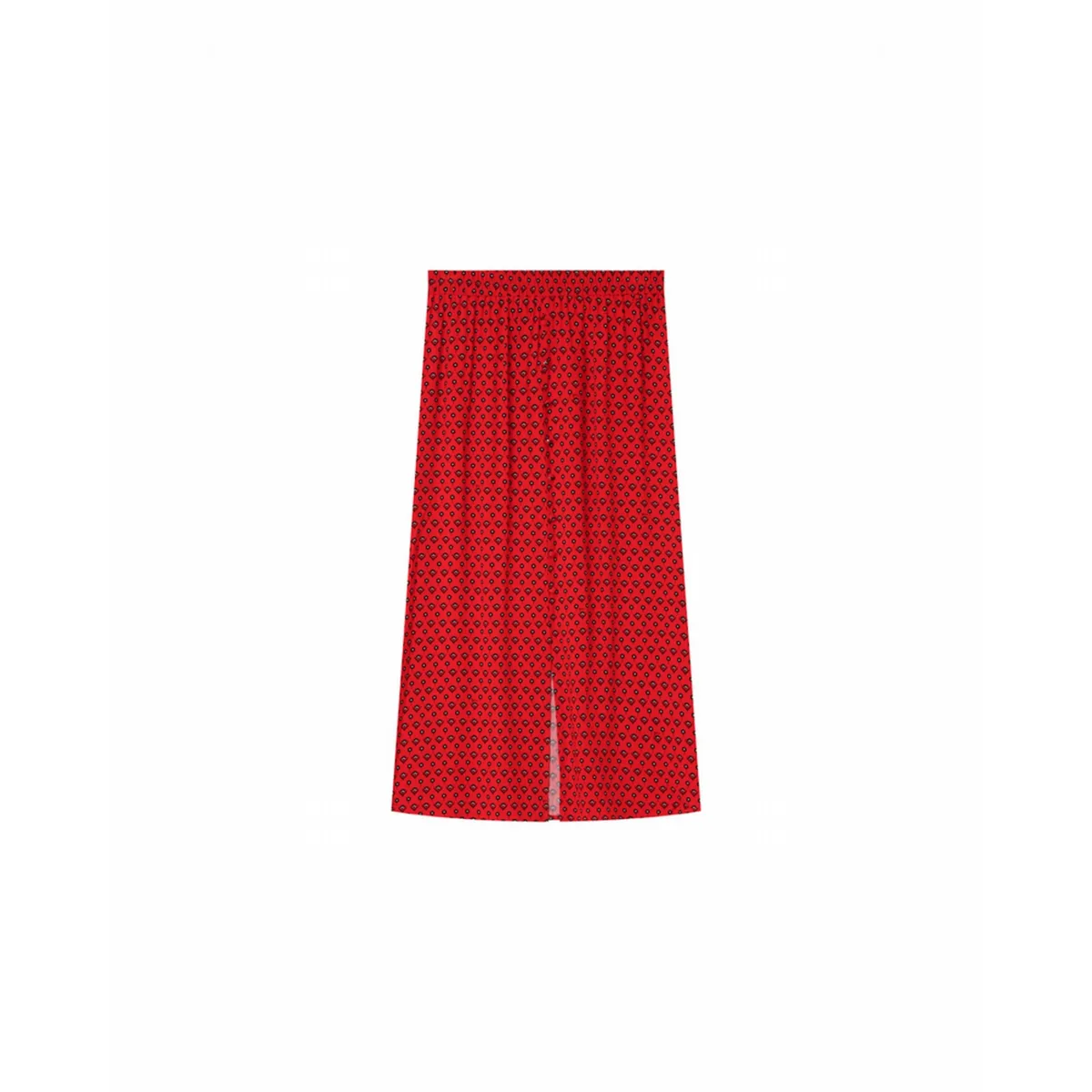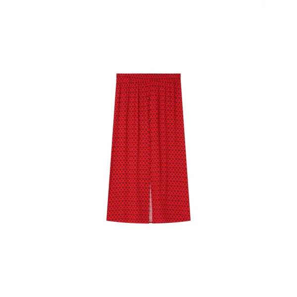 GWENDAEL is een midi lengte rok met een elastische riem.Zijn knoppen zijn bedekt.De snit is uitlopend.Deze mooie rok is gemaakt in een door onze teams ontworpen print en heeft een split aan de voorkant die sensualiteit aan uw outfit brengt.Dit stuk sluit aan bij onze natuurlijke vezelserie Un brin de vert.We dragen het graag met: Een top met dunne bandjes, een open vest en enkellaarsjes voor een sensuele bohemian look.Â