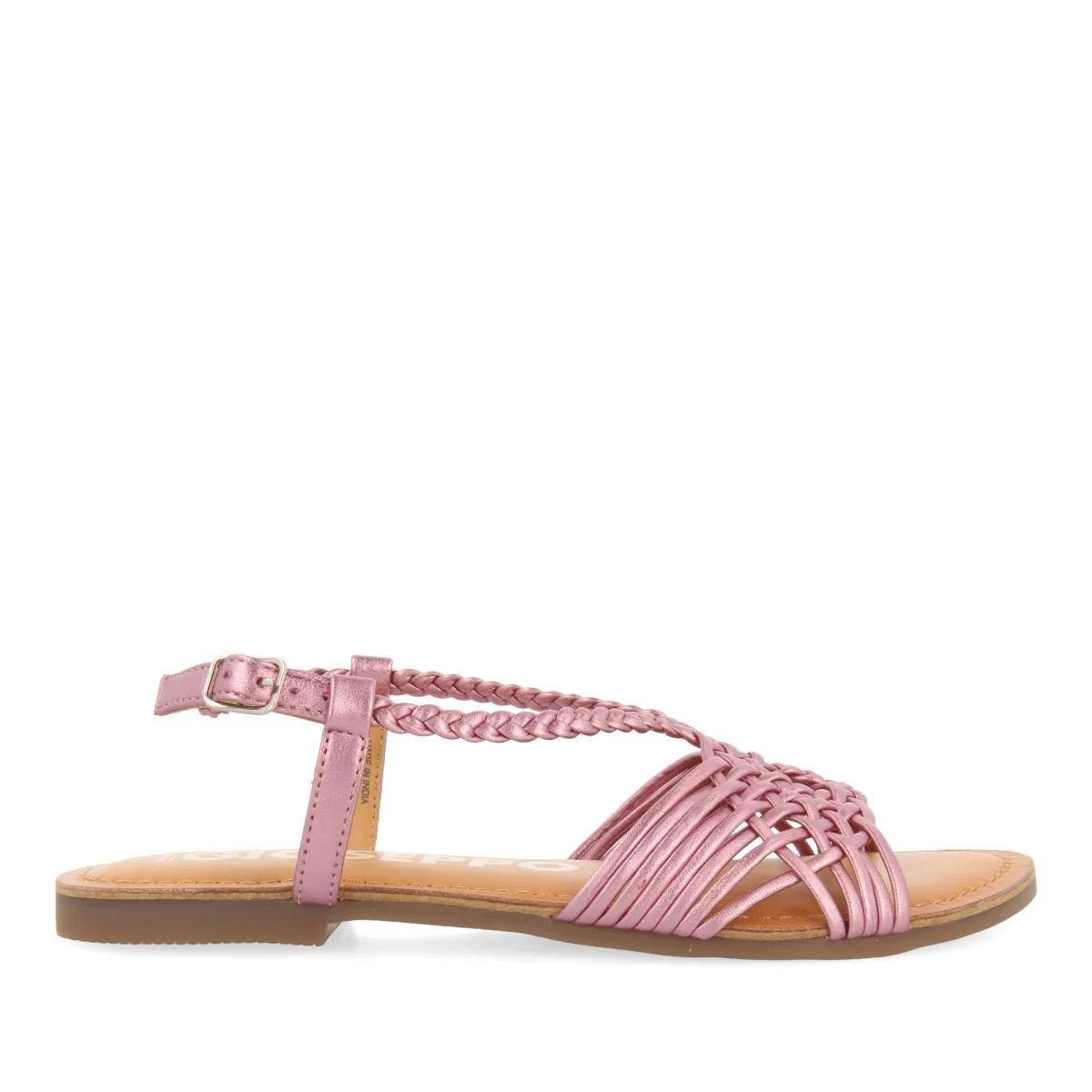 De meest comfortabele sandalen van de zomer! Roze leren sandalen met kriskras gevlochten bandjes en verstelbare enkelsluiting. Leren voering. Gevoerde zool van leer dat is gelooid in leerlooierijen die een duurzamer looiprotocol gebruiken volgens de normen van de Leather Working Group. Flexibele zool. Ontdek de nieuwste sandalen van Gioseppo Woman. Hakhoogte 1,5 cm.