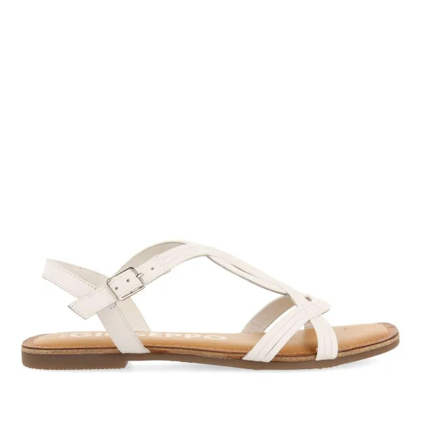 Een essentiële basic dit seizoen. Goudleren sandalen met kriskrasbandjes en verstelbare enkelsluiting. Leren voering. Gevoerde zool van leer dat is gelooid in leerlooierijen die een duurzamer looiprotocol gebruiken volgens de normen van Leather Working Group. Flexibele zool. Mis de nieuwe SS24-sandalen van Gioseppo Woman niet. Hakhoogte 2 cm.