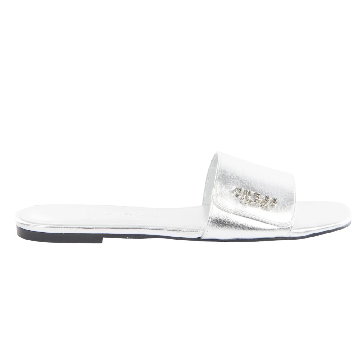 Guess Est G damesclaquette van synthetisch materiaal in zilver. Authentieke Guess-schoen - streetwear/sportwear design van Guess - Guess voor modebewuste vrouwen, perfect voor dagelijks gebruik - de zilveren Guess claquette past perfect bij de rest van je garderobe - comfortabele synthetische stof - klassieke gesp - Est G - synthetisch.