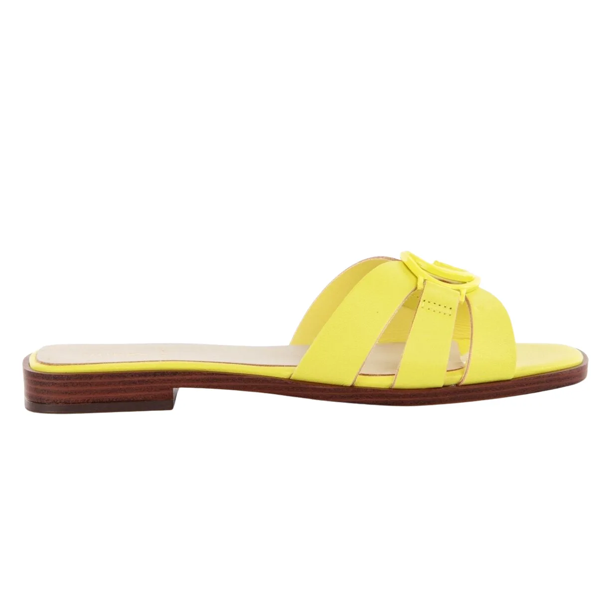 Guess Symo damesmuiltjes, geel leer. Authentieke Guess merkschoen - streetwear/sportwear design van Guess - Guess voor modebewuste vrouwen, perfect voor dagelijks gebruik - gele Guess muiltjes passen perfect bij de rest van je garderobe - comfortabel leer - klassieke gesp - Symo - synthetisch.