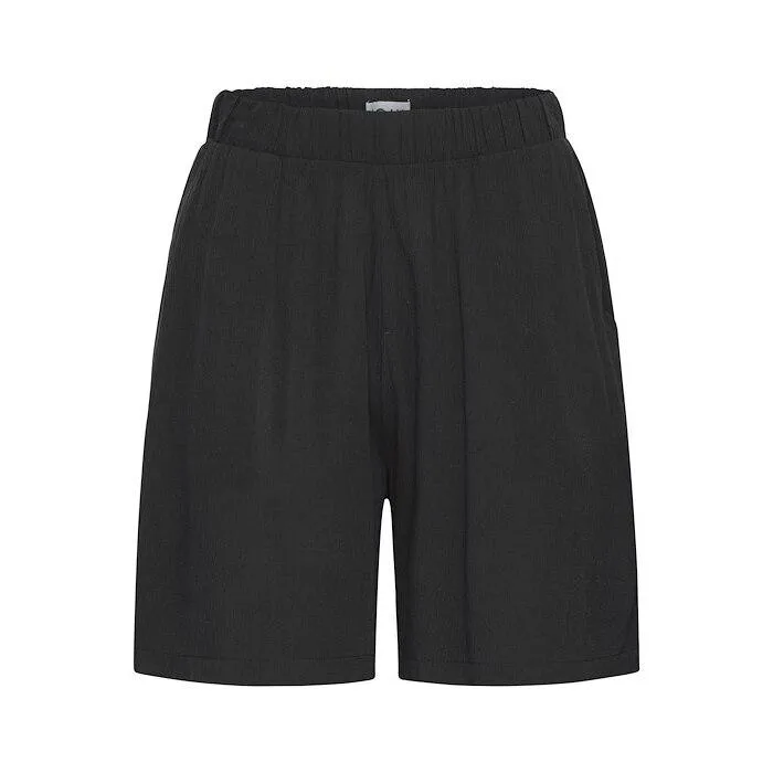 Korte losse broek met een elastische taille en een rechte pasvorm. De vloeiende silhoutte en de knielange lengte kenmerken een moderne en strakke stijl.
