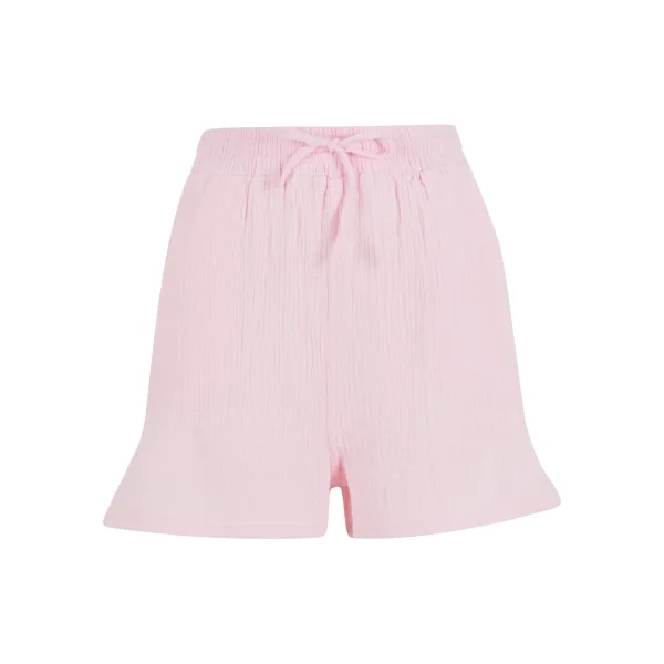 MateriaalinformatieBuitentextiel 1: 100% KatoenOntdek moeiteloze stijl en comfort met deze dames Musselin shorts. Ontworpen voor een relaxte pasvorm, hebben ze een elastische tailleband met verstelbare trekkoorden, wat zorgt voor een perfecte pasvorm elke keer weer. Twee zijzakken voegen praktisch nut toe, waardoor ze ideaal zijn voor casual uitjes of loungen thuis. Omarm de ontspannen sfeer van deze sweat shorts, waar gemak ontmoet elegantie in alledaagse kleding.