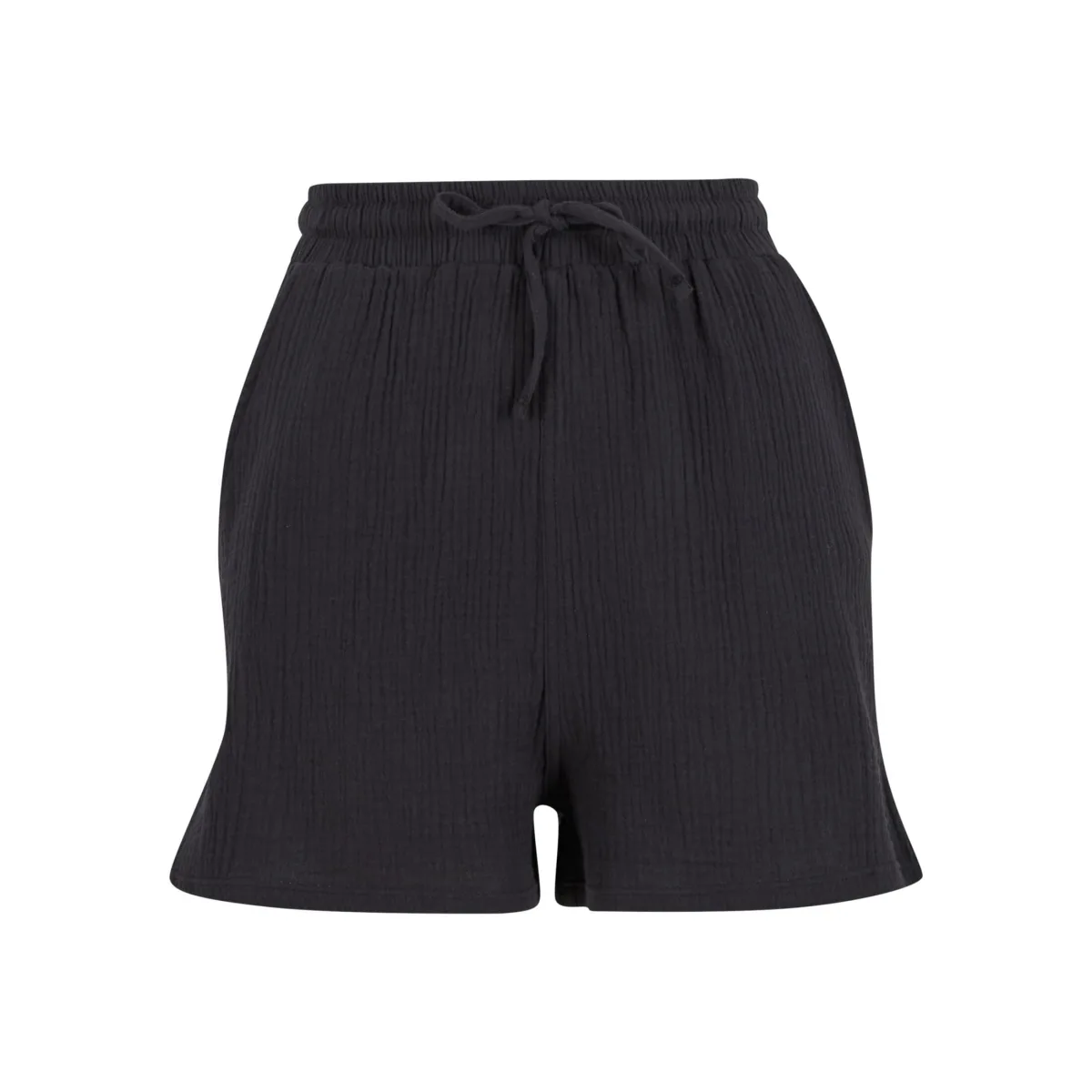 MateriaalinformatieBuitentextiel 1: 100% KatoenOntdek moeiteloze stijl en comfort met deze dames Musselin shorts. Ontworpen voor een relaxte pasvorm, hebben ze een elastische tailleband met verstelbare trekkoorden, wat zorgt voor een perfecte pasvorm elke keer weer. Twee zijzakken voegen praktisch nut toe, waardoor ze ideaal zijn voor casual uitjes of loungen thuis. Omarm de ontspannen sfeer van deze sweat shorts, waar gemak ontmoet elegantie in alledaagse kleding.