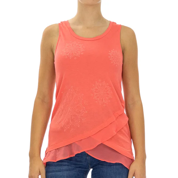 Desigual tanktop. Roze kleur Wijde ronde hals. Effen dessin met mandalaborduursel. Naden in toon zichtbaar. Kruisborduursel op voorkant. Samenstelling: 90% polyester, 10% elastaan Wasvoorschriften: - Temperatuur wassen. Max 30ºC. -Niet drogen in de wasmachine. -Kleuren niet mengen -Temperatuur max. 110ºC Samenstelling: 90% Polyester, 10% Elastaan Onderhoud: Wasvoorschriften: - Temperatuur wassen. Max 30ºC. -Niet drogen in de wasmachine. -Kleuren niet mengen -Max. temperatuur 110ºC