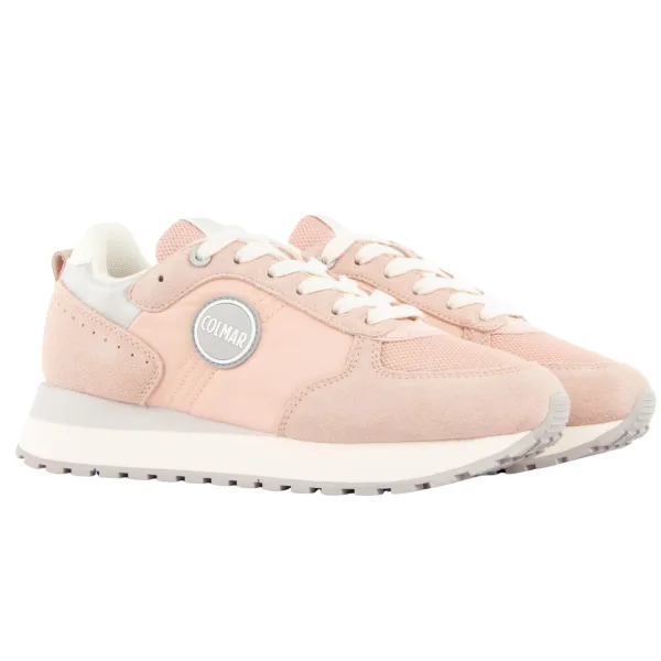 Colmar Travisa damessneakers roze synthetisch. Authentieke Colmar merkschoen – streetwear/sportwear design van Colmar – Colmar voor dames, modieus en perfect voor dagelijks gebruik – deze roze Colmar sneakers passen perfect bij de rest van je garderobe – comfortabel synthetisch materiaal – klassieke vetersluiting – Travisa – synthetisch