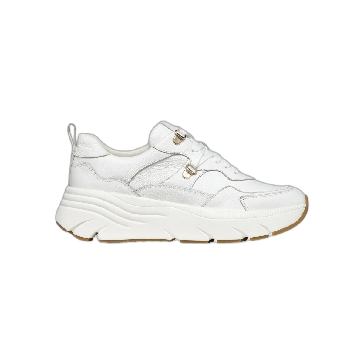 Sneakers voor dames die comfortabel en ademend zijn, met een eigentijds design geïnspireerd op hardlopen. Hier aangeboden in een iconische witte versie, hebben deze schoenen een zachte leren bovenkant gecombineerd met een extreem trendy chunkyzool. Een must-have in de stadsgarderobe, de Diamanta geven een actieve touch aan dagelijkse casual outfits en vallen op door hun unieke stijl.Belangrijkste kenmerkenOptimale demping die bescherming biedt en schokken en belasting absorbeertHakhoogte: 5,5 cm / 2,2"Lichte schoenenVetersluiting; Uitneembare binnenzool