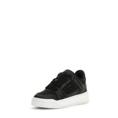Guess Delove damessneakers in zwart synthetisch materiaal. Originele Guess merkschoen – streetwear/sportswear design van Guess – modieuze Guess schoen voor dames, perfect voor dagelijks gebruik – deze zwarte Guess sneakers zijn een ideale aanvulling op je garderobe – comfortabel synthetisch materiaal – klassieke veters – Delove – synthetisch
