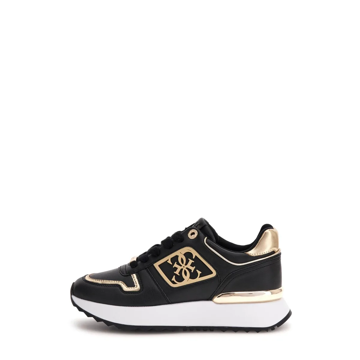 Guess Koyaa Logo 4G damessneakers, zwart polyurethaan. Authentieke Guess-schoen - streetwear/sportswear design van Guess - Guess voor modebewuste vrouwen, perfect voor dagelijks gebruik - zwarte Guess sneakers passen perfect bij de rest van je garderobe - comfortabel polyurethaan materiaal - klassieke veters - Koyaa Logo 4G - synthetisch.