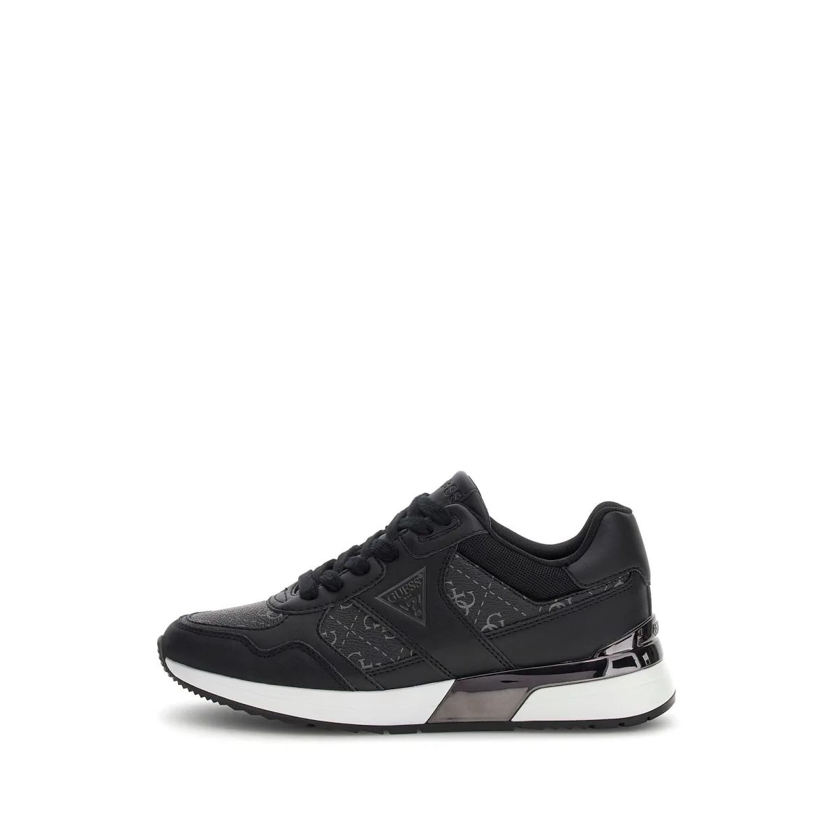 Guess Mickay damessneakers in zwart synthetisch materiaal. Originele Guess schoen in een streetwear/sportswear design. Modieuze Guess schoen voor dames, perfect voor dagelijks gebruik. Deze zwarte Guess sneakers zijn een geweldige aanvulling op je garderobe. Comfortabel synthetisch materiaal. Klassieke veters. Model: Mickay.