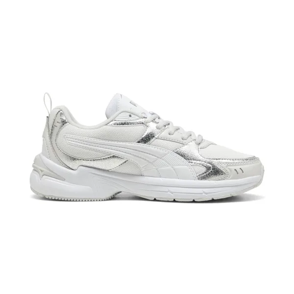 Geïnspireerd door het begin van de jaren 2000, combineert deze progressieve hardloopschoen veelzijdigheid en comfort. Met een bovenwerk van mesh, synthetische leren overlays, een EVA-zool met een TPU-hakdeel, is deze schoen het perfecte element om je streetstyle-look te verbeteren. Als onderdeel van de "Metallic Whisper" collectie, is deze versie ontworpen om indruk te maken met zijn nieuwe gouden of zilveren band.