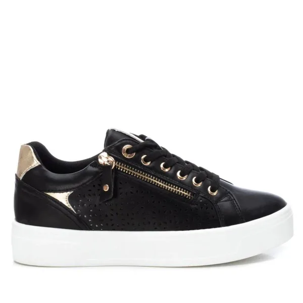 Dames sneakers van het merk Xti. Gemaakt van een materiaal dat leer imiteert met geperforeerde zijkanten. Ritssluiting aan de zijkant, met decoratieve veters. Mooi antisliprubberen zool. Verwijderbare binnenzool. Dit model heeft het vegan certificaat van de wereldwijde organisatie PETA (Organisatie voor dierenrechten) ontvangen.