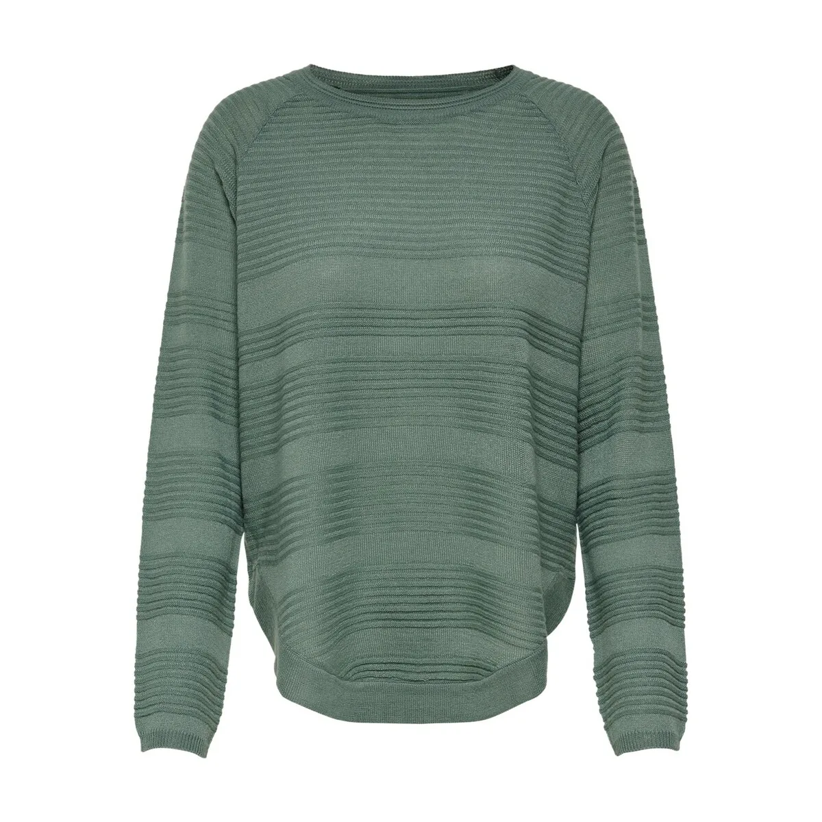 - Gebreide trui- Ronde en brede kraag- Gebreid met structuur- Lengte: 64 cm in maat M- Het model draagt maat S