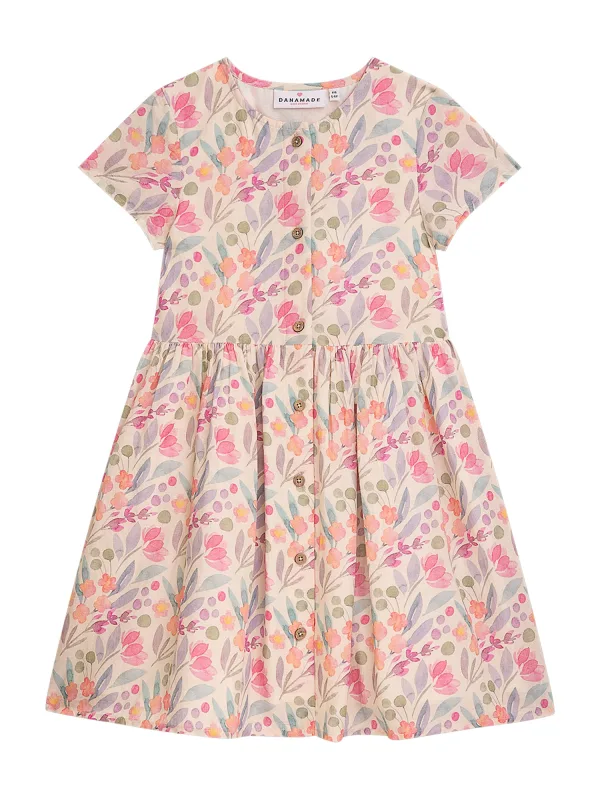 Danamade Jurk crème / groen / lavendel / pink