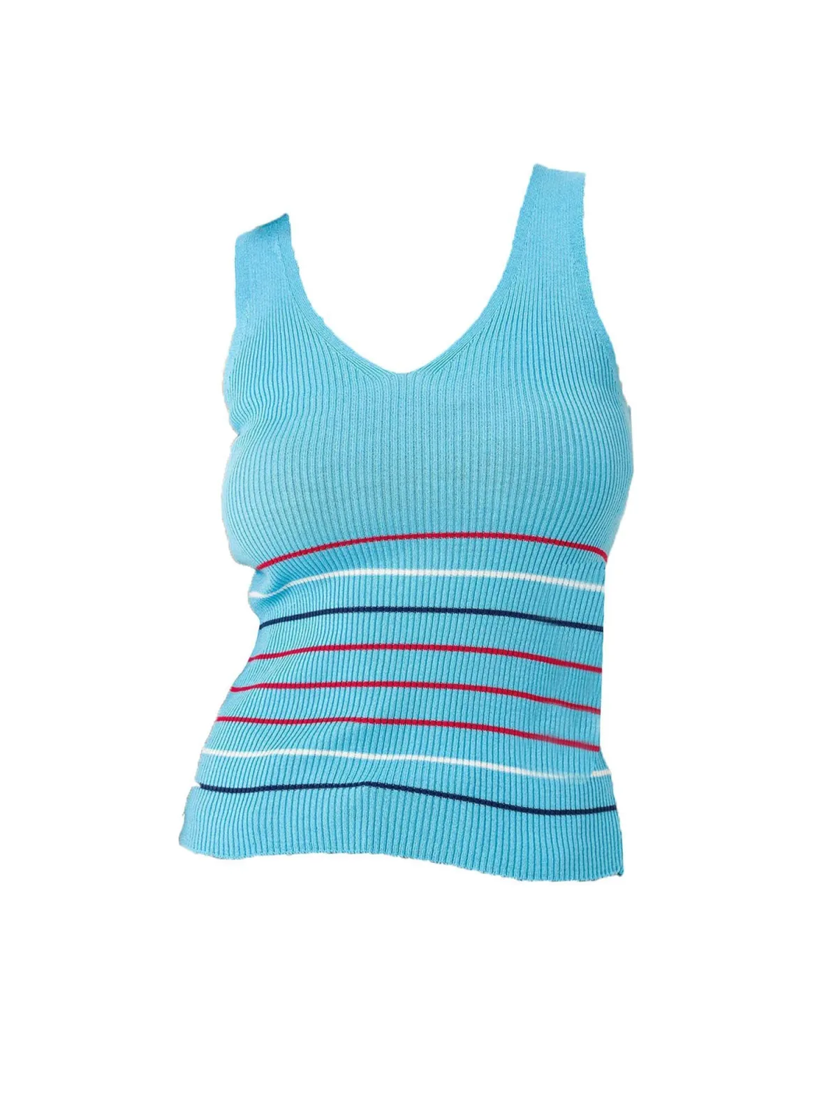 Design: Rechte zoom, Diepe snit/decolleté, Elastische inserts; Materiaal: Knitwear; Halstype: V-hals; Motief: Krijtstrepen; Soort bandjes: Normale bandjes; Details: Zijstrepen; Extra's: Voelt zacht aan; Pasvorm: Normale pasvorm; Armlengte: Mouwloos; Lengte: Normale lengte