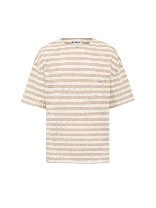 Design: Overcut schouder; Materiaal: Jersey; Halstype: Ronde hals; Motief: Gestreept; Extra's: All-over patroon; Pasvorm: Losse pasvorm; Armlengte: Halve mouw; Lengte: Normale lengte