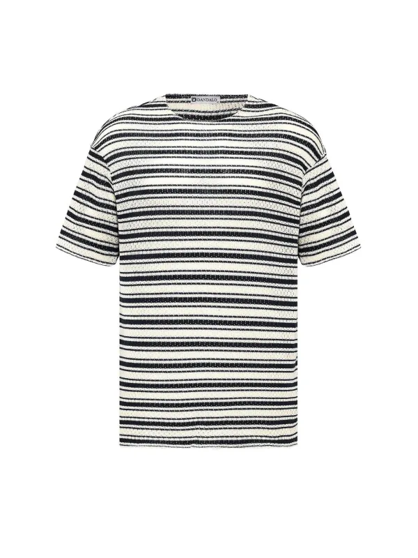 Design: Rechte zoom, Overcut schouder; Materiaal: Knitwear; Halstype: Ronde hals; Motief: Gestreept; Extra's: All-over patroon, Met textuur; Pasvorm: Wijde pasvorm; Armlengte: Halve mouw; Lengte: Lange pasvorm