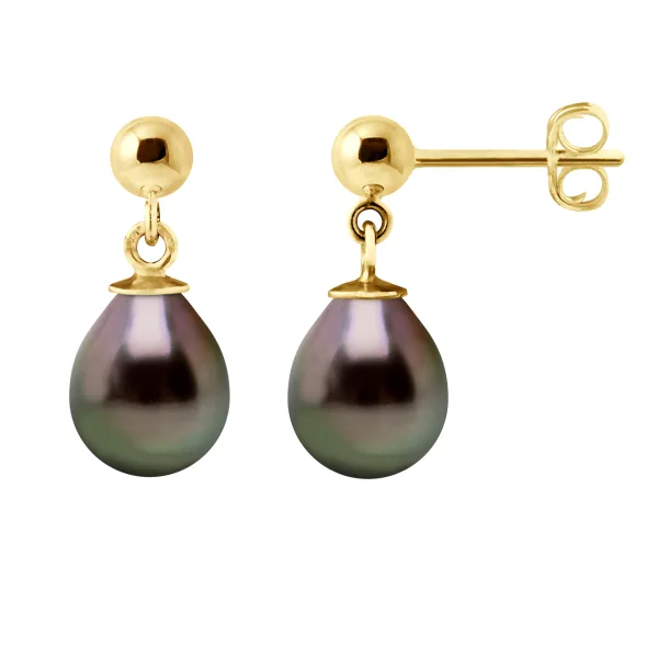 Oorbellen Dangle True gekweekte parels van Tahiti Peren 8-9 mm - Kwaliteit A + -System Kinderwagens - Yellow Gold 375 duizendste - 2 jaar garantie op fabricagefouten - Geleverd in hun presentatie geval met een certificaat van echtheid en Garantiefonds voor de internationale - Al onze juwelen zijn gemaakt in Frankrijk.