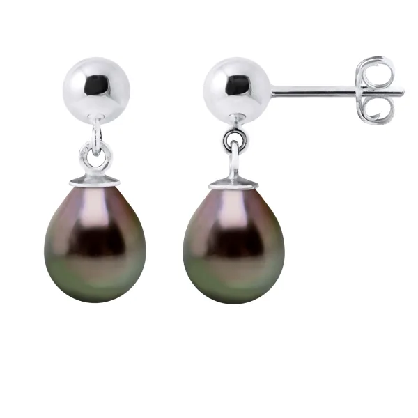 Oorbellen - 925 duizendste - Gekweekte parels uit Tahiti pear 8-9 mm - kinderwagens systeem - Wordt geleverd in een koffer met een certificaat van echtheid en een internationale garantie - Al onze juwelen zijn gemaakt in Frankrijk.