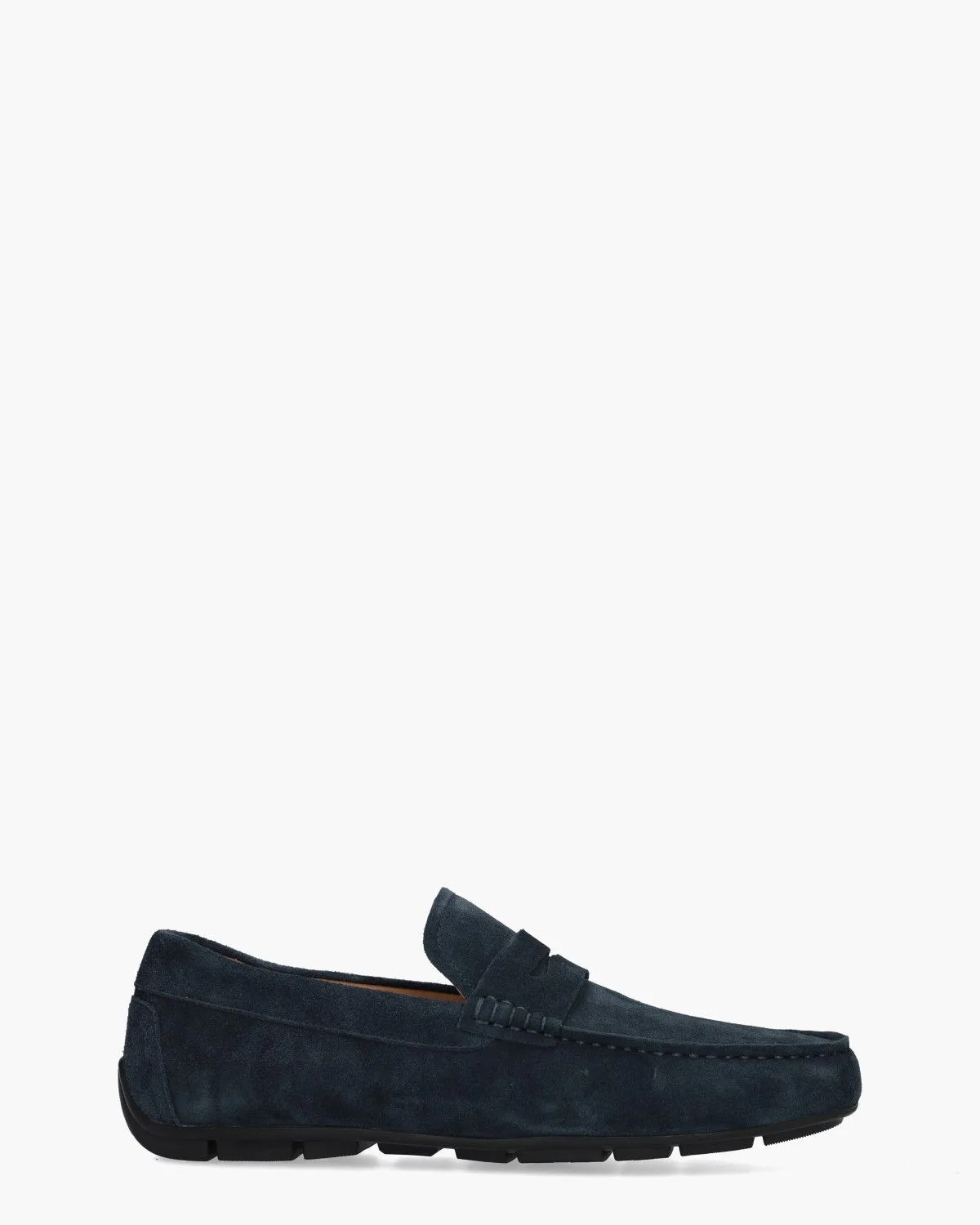 Klassiek met een sportieve basis: de Daniel Kenneth Zadok loafer voor heren is uitgevoerd in donkerblauw suède en afgewerkt met verfijnde sierstiksels en een tijdloze pennyband op de wreef. De binnenzijde combineert leer met synthetisch materiaal en bevat een uitneembaar voetbed voor prettig draagcomfort. De zwarte rubberen zool